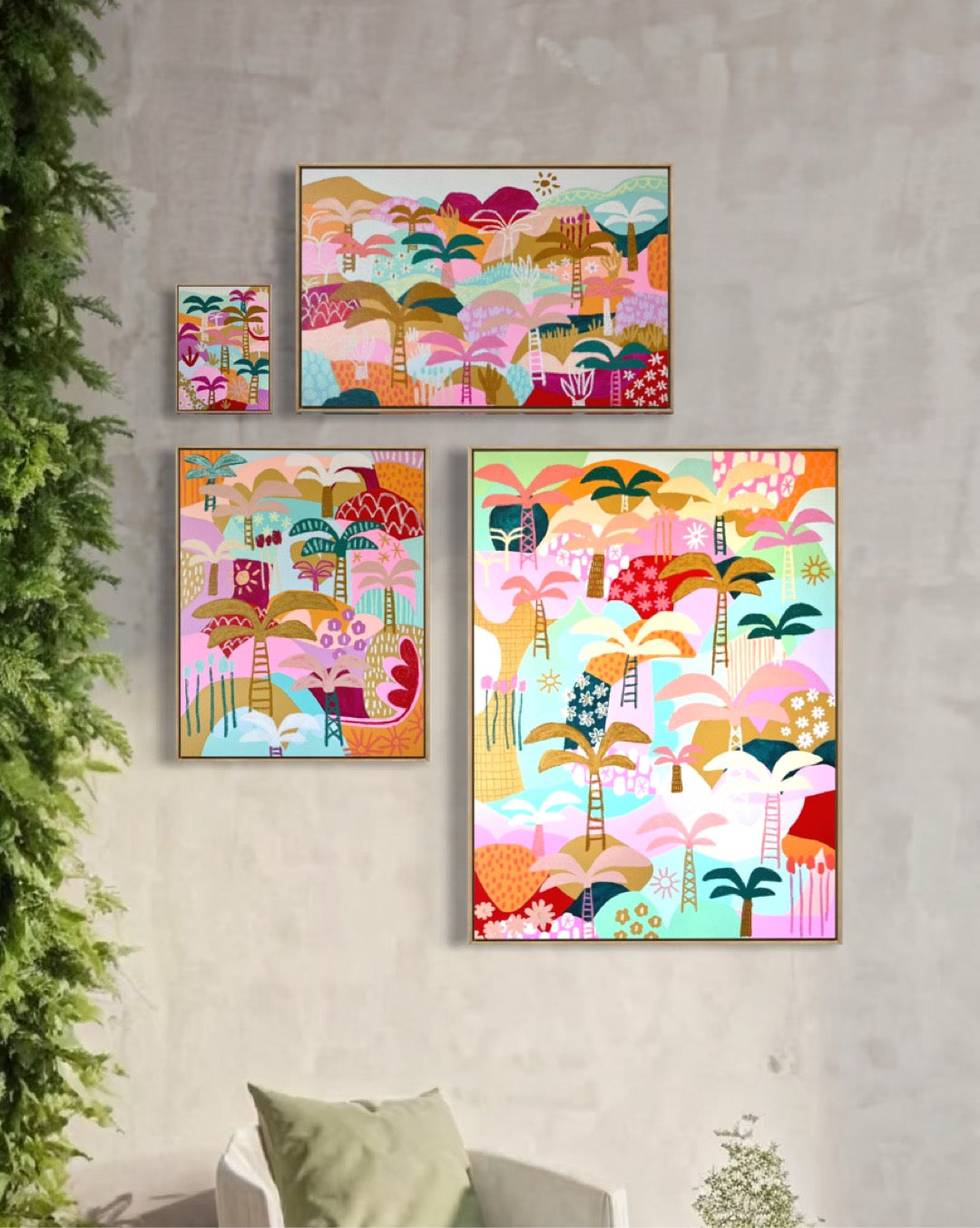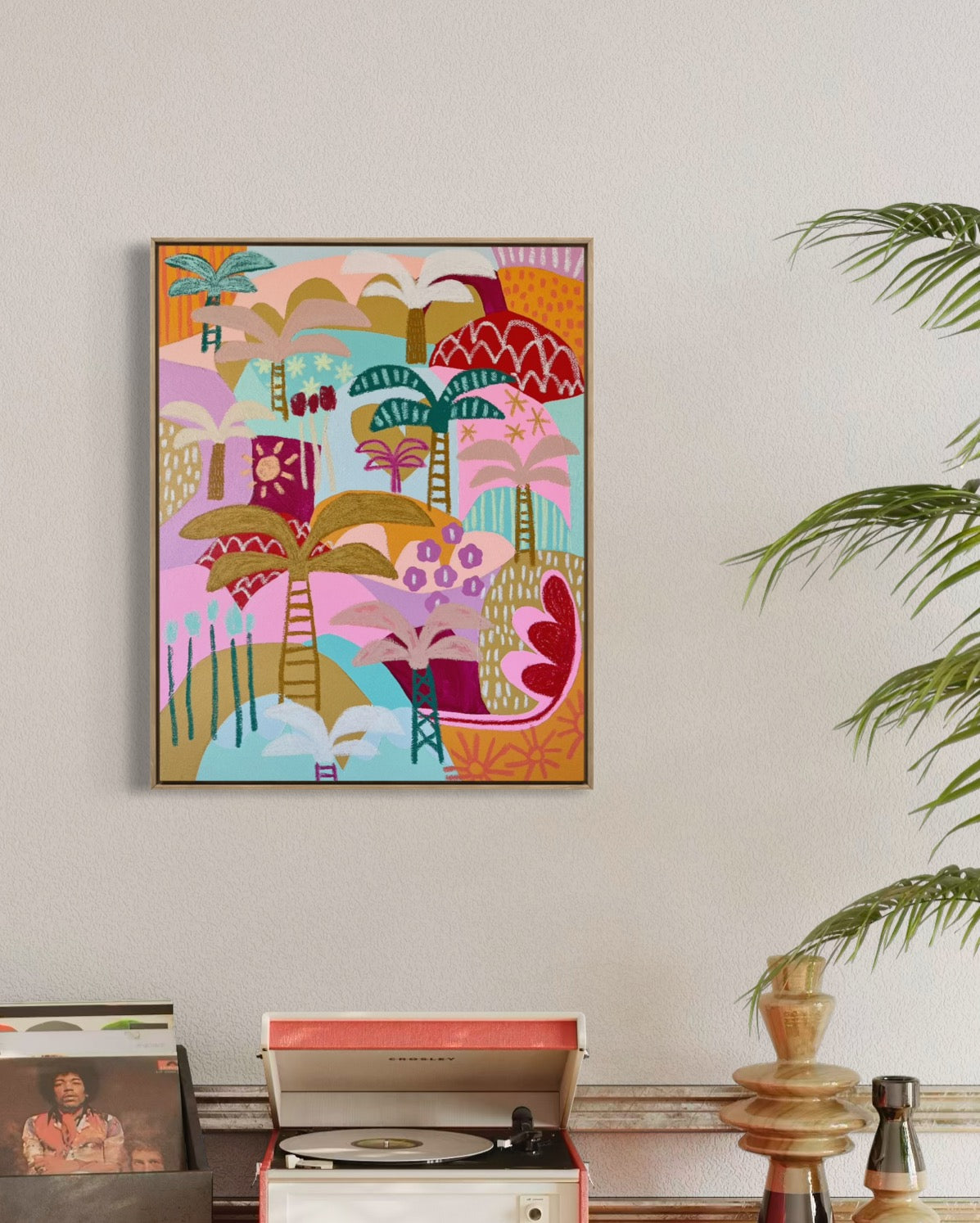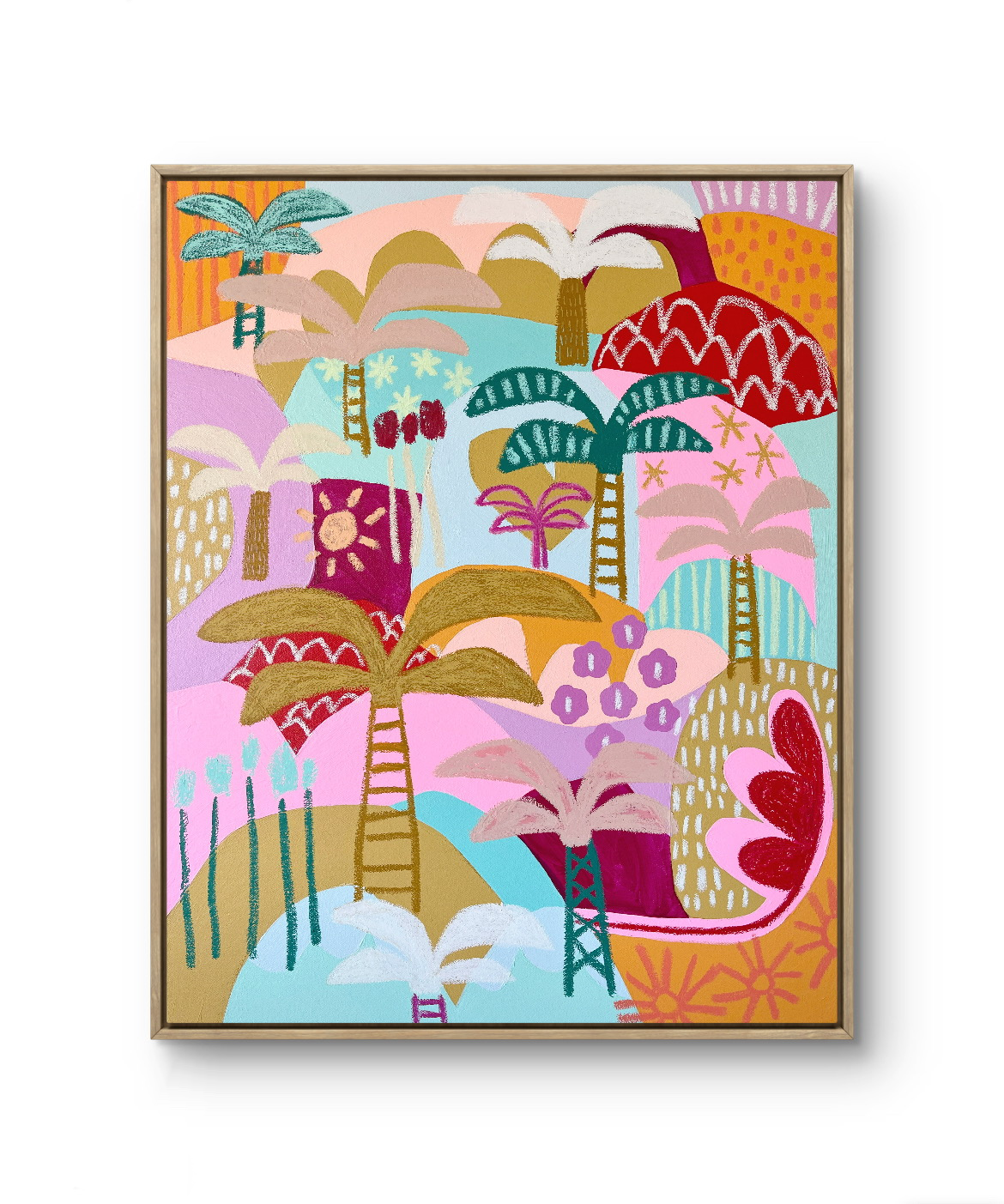 Comes stretched but unframed (edges are painted) Floating frame can be added at extra cost
