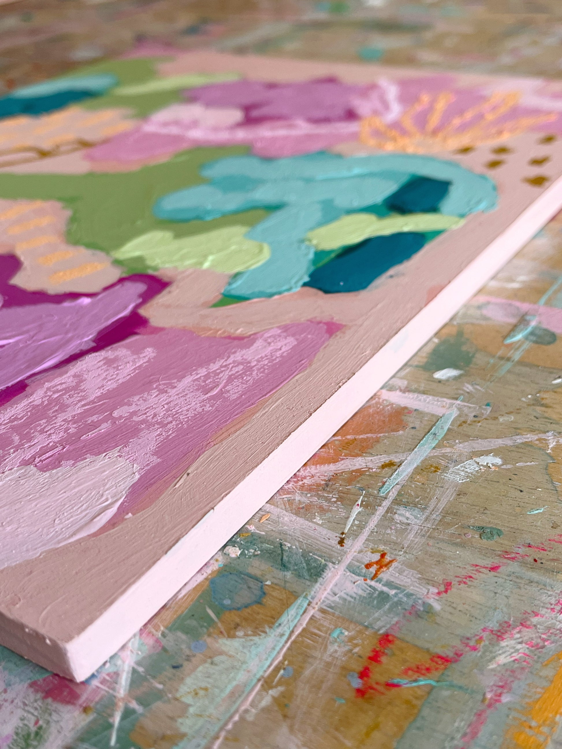 Acrylic and oil stick on 10mm thick wooden board